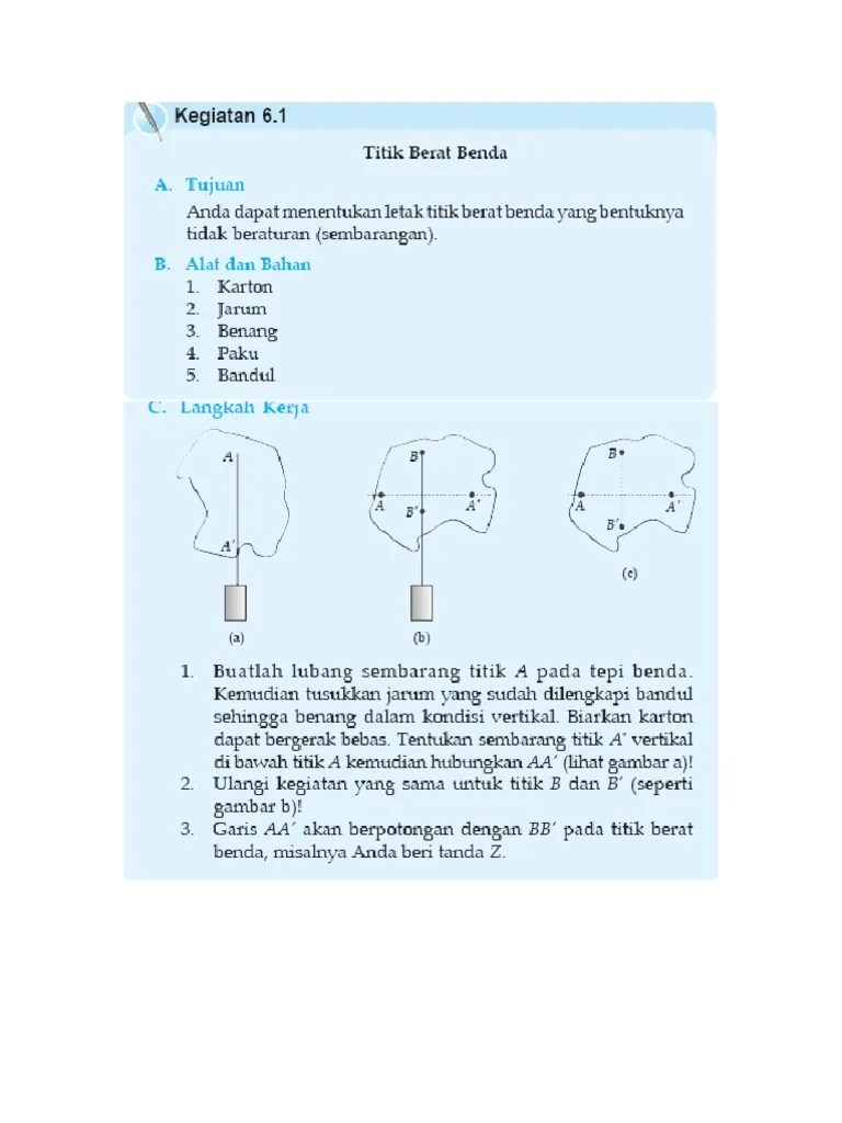Laporan tugas praktikum fisika titik berat. Titik berat adalah suatu titik kesetimbangan suatu benda ataupun suatu bangun baik itu panjang maupun luas dan volume. Keberhimpitan ini dapat digunakan untuk menentukan pusat massa sebuah keping tipis yang bentuknya tidak beraturan. Laporan ini disusun dengan judul menentukan letak titik berat benda homogen berbentuk luasan. Judul hukum kekekalan energi mekanik. Tak lupa penyusun mengucapkan terima kasih kepada semua pihak yang telah membantu dalam penyusunan laporan ini. Nama kelompok — untuk mencari titik berat benda yang yang bentuknya tidak beraturan dengan titik koordinatnya dimana hal tersebut dapat ditentukan dengan langkah menggantungkan benda dan. Tak lupa penyusun mengucapkan terima kasih kepada semua pihak yang telah membantu dalam penyusunan laporan ini. Laporan praktikum titik berat dan keseimbangan benda bilingual. Laporan praktikum titik berat benda. Sebagai mana diketahui bahwa salah satu tujuan dari praktikum fisika ini adalah untuk meningkatkan pengetahuan dan kemampuan siswa perihal kesetimbangan benda tegar.karena dalam pelaksanaan praktikum fisika dasar ini siswa dapat. Tidak, diperoleh hasil yang berbeda , karena untuk semua yang memiliki bentuk beraturan seperti segitiga , bujursangkar, dan persegi panjang , dan benda berukuran lainnya akan memeroleh luasan yang. Untuk bangun 2 dimensi segiempat (persegi maupun persegi panjang) titik berat berada pada perpotongan diagonalnya.